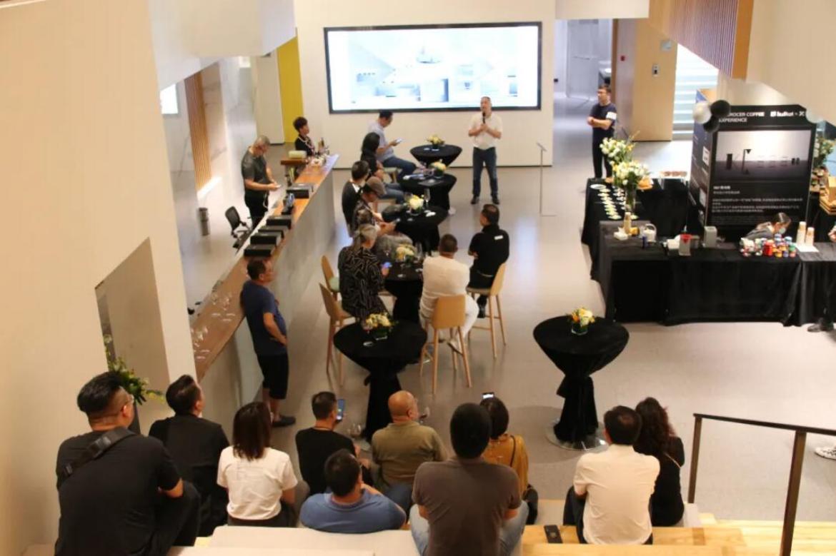 在游學(xué)活動交流中,設(shè)計師們共同品鑒紅酒,暢聊設(shè)計;現(xiàn)場還有專業(yè)咖啡培訓(xùn)師,為大家細致教學(xué)手磨咖啡的沖制流程。
